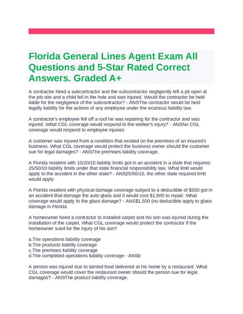 Read Online FLORIDA GENERAL LINES AGENT PRACTICE EXAMS Epub